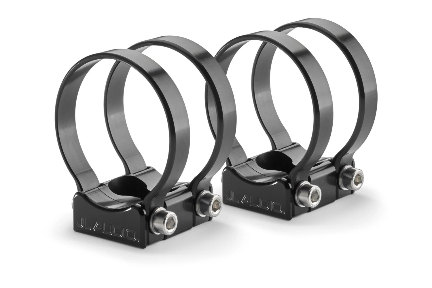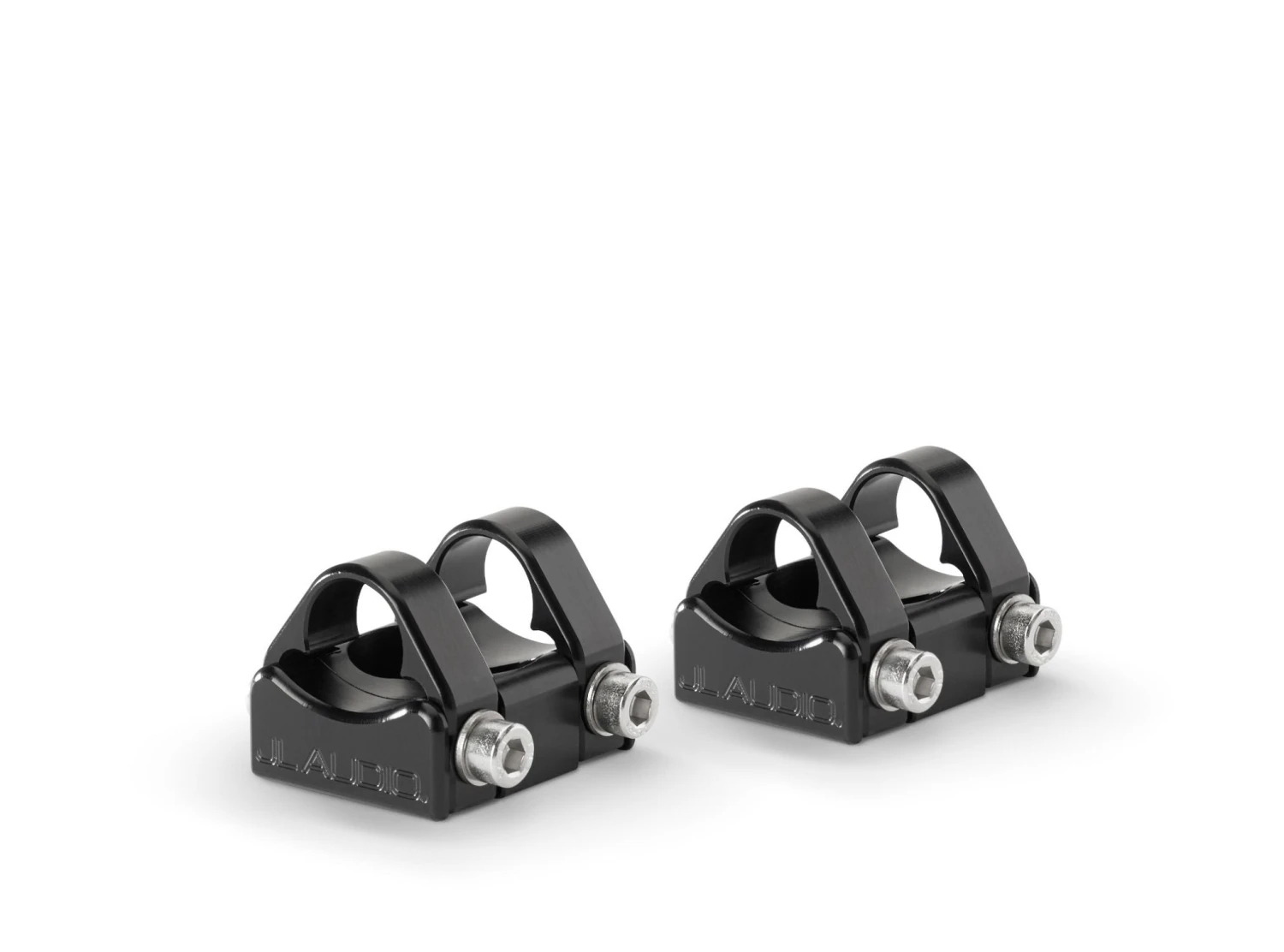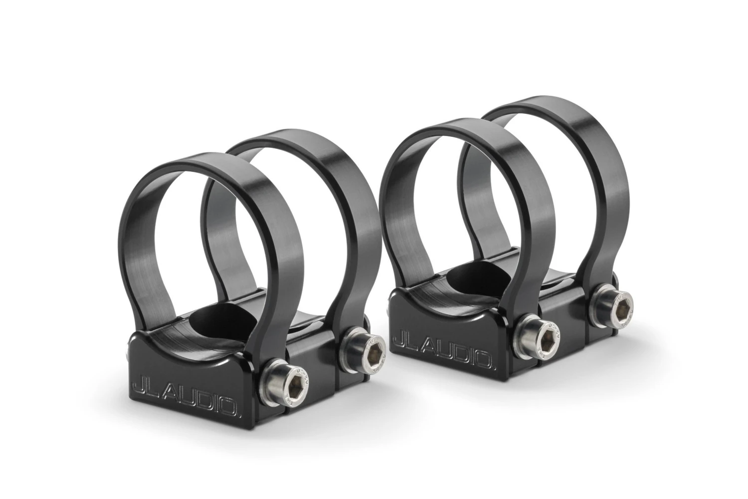 Low-profile, machined mounting fixtures provide rock-solid attachment points for the VeX™ Enclosed Systems to a variety of roll cage diameters. They feature the JL Audio name logo machined in the side. Each mounting fixture set is designed to mount two VeX™ Pods.
