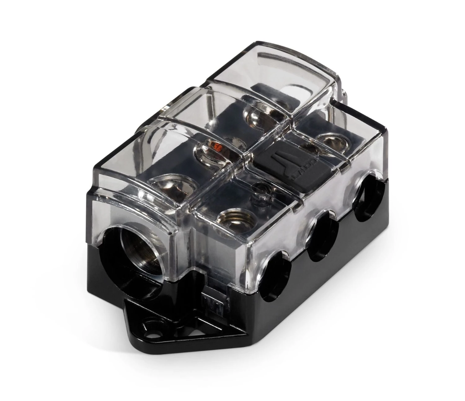 Designed to split a large wire down to three smaller wires where fusing of the small wires is not needed. The input of this block accepts wire from 1/0 to 4 AWG, while the three outputs each accept wire from 4 AWG to 8 AWG. OmniSert™ receptacles capture various size wires without the need for adaptor sleeves.